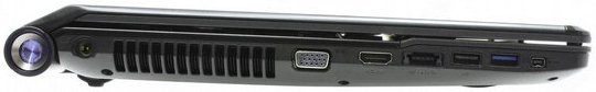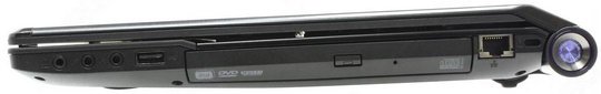 С правой стороны ноутбука находится три аудио входа, LAN порт, один USB 2.0, замок Kensington security и DVD±RW (DL). С левой стороны располагается порт VGA, для подключения к внешнему монитору, порт HDMI с поддержкой сигнала 1080p, который служит для подключения к телевизору высокой чёткости, вход FireWire (IEEE 1394), один высокоскоростной USB 3.0, два USB 2.0 (1 из портов USB 2.0 разделён с портом E-SATA) и вход для зарядного устройства. Все эти порты открывают перед вами очень широкий спектр возможностей. И помимо всего прочего ноутбук обладает встроенным Bluetooth 3.0, который позволит вам пользоваться беспроводной передачей данных и синхронизировать с ноутбуком мобильные устройства. А благодаря, WiFi (802.11b/g/n) вы так же обретёте возможность пользоваться беспроводным доступом к сети интернет, а веб – камера (1.3мпикс) позволит вам общаться с друзьями и близкими в видео чатах.В комплект к ноутбуку входит: блок питания, описание на русском языке, и предустановленный пакет программ Office 2010 Starter, благодаря которому вы сможете без промедлений приступить к работе в офисных программах.