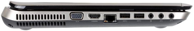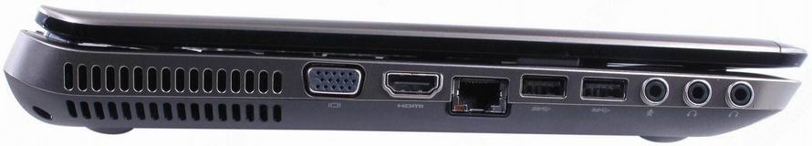 Дискретная видеокарта ATI Mobility Radeon даст качественное графическое сопровождение для любого приложения, фильма или игры, а современная акустическая система обеспечит вас дополнительными впечатлениями и ещё больше погрузит вас в атмосферу просматриваемого вами фильма или игры. Современный процессор AMD A-Series Quad-Core обеспечит качественную и бесперебойную работу любого современного приложения и обеспечит необходимую многозадачность. В левой, боковой части корпуса находятся порты HDMI и VGA, которые служат для подключения ноутбука к телевизору высокой чёткости и внешнему монитору. Так же, там расположены два входа для наушников и один вход для микрофона, плюс, ноутбук уже имеет два встроенных микрофона. В правой боковой части расположен DVD±RW (DL+LightScribe), с поддержкой двухслойной записи, вход для зарядного устройства и система безопасности Kensington security. На передней панели находиться Card Reader 2-в-1 (SD/MMC), который позволяет работать с картами флеш – памяти. Ноутбук имеет 4 порта USB, два из них расположены в левой боковой части корпуса, а два других в правой.