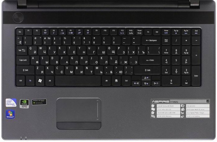 Acer Aspire 7739ZG - мультимедийный ноутбук, выполненный в привлекательном и эргономичном дизайне. Корпус выполнен из прочных материалов с приятными на ощупь текстурами. Acer Aspire 7739ZG оснащен современным процессором Intel® Pentium Dual-Core, а также быстрой оперативной памятью частотой 1333MHz и высокопроизводительным дискретным графическим ядром NVIDIA® GeForce® GT 610M c одним гигабайтом видеопамяти. Ноутбук оснащен 17,3-дюймовым светодиодным дисплеем Acer CineCrystal™ с разрешением HD (1600x900 пикселей), обеспечивающим высокое качество изображения, благодаря первоклассным графическим опциям. Сенсорный планшет TouchPad поддерживает MultiTouch. Встроенный модуль WiFi (802.11b/g/n) предоставит вам возможность беспроводного доступа в сеть Интернет.