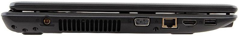 С левой стороны ноутбука находится порт VGA, который служит для подключения ноутбука к внешнему монитору, порт HDMI для подключения к телевизору высокой чёткости, LAN порт, один USB 2.0 и вход для зарядного устройства. С правой стороны расположился DVD±RW (DL) с поддержкой двухслойной записи, замок Kensington security и два USB 2.0. Ну и, конечно же, не обойтись без Card Reader 2-в-1 (SD/MMC), который находится в передней части ноутбука.В комплект к ноутбуку входит: блок питания, описание на русском языке, и предустановленный пакет программ Office 2010 Starter, благодаря которому вы сможете без промедлений приступить к работе в офисных программах.