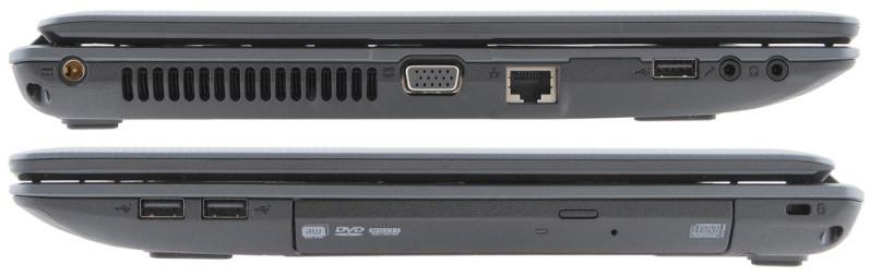 В ноутбук встроен современный процессор Intel®Core™i3, который обеспечит вас необходимой производительностью и позволит спокойно работать даже при высоких нагрузках на систему. Так же ноутбук обладает широким спектром портов и разъёмов, которые откроют перед вами новые возможности. С левой стороны корпуса расположились: два аудио входа, один USB 2.0, LAN порт, вход для зарядного устройства и разъёмы VGA и HDMI, которые служат для подключения к внешнему монитору и телевизору высокой чёткости. С правой стороны находятся два USB 2.0 DVD±RW (DL) с поддержкой двухслойной записи и замок безопасности Kensington security. А в передней части корпуса расроложился Card Reader 5-в-1 (SD/MS/MS-Pro/MMC/xD), который позволит вам работать с картами – флеш памяти. Литий – ионная батарея позволит вам работать на ноутбуке без подзарядки около трёх часов. Общий вес ноутбука составляет 2.3 килограмма.