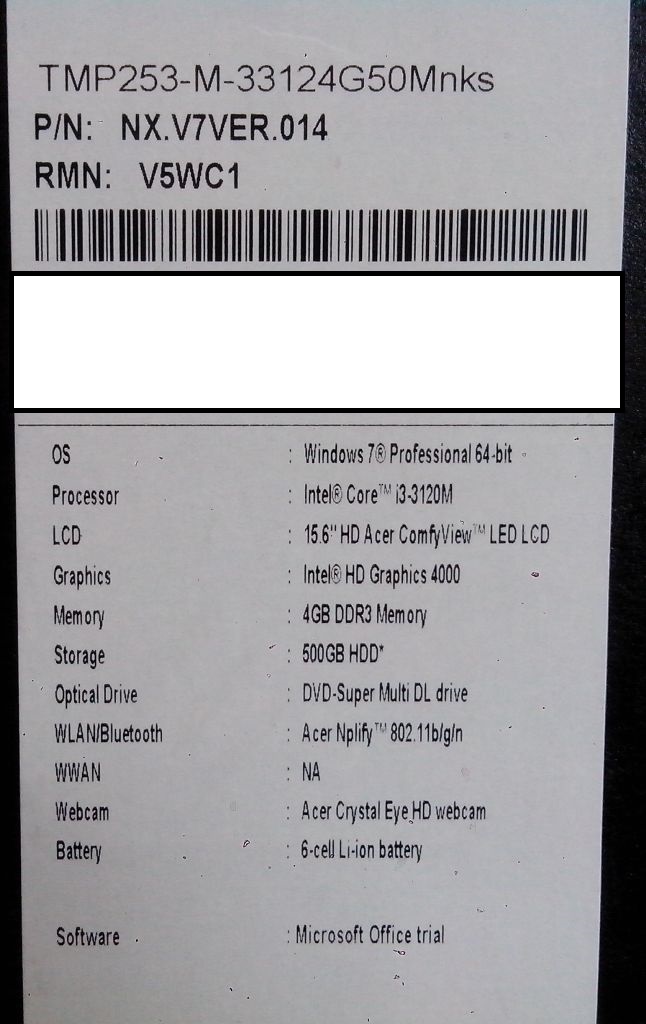 Описание ноутбука Acer TravelMate P253-M-33124G32Mnks NX.V7VER.001