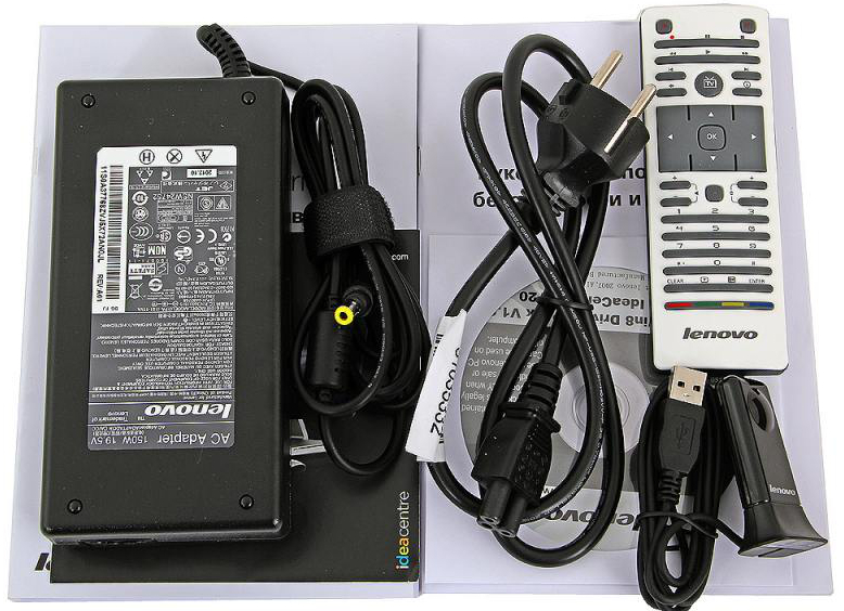 Комплектность | Батарейка типа AA, 2 батарейки типа AAA, блок питания, описание на русском языке, диск с драйверами и утилитами, ИК- приёмник, клавиатура и мышь беспроводные, пульт Д/У |