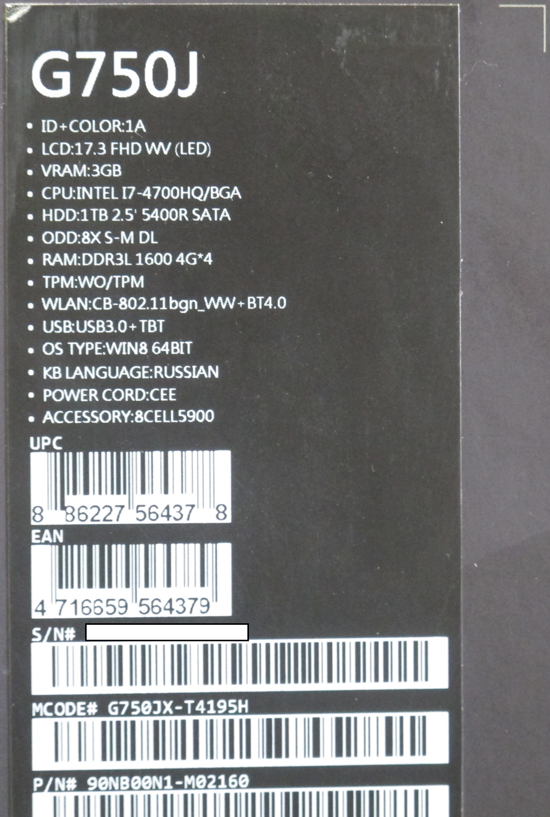 Описание ноутбука Asus G750Jx-T4195H 90NB00N1-M02160