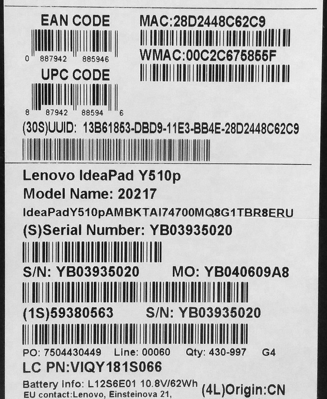 Описание ноутбука Lenovo IdeaPad Y510p 59380563