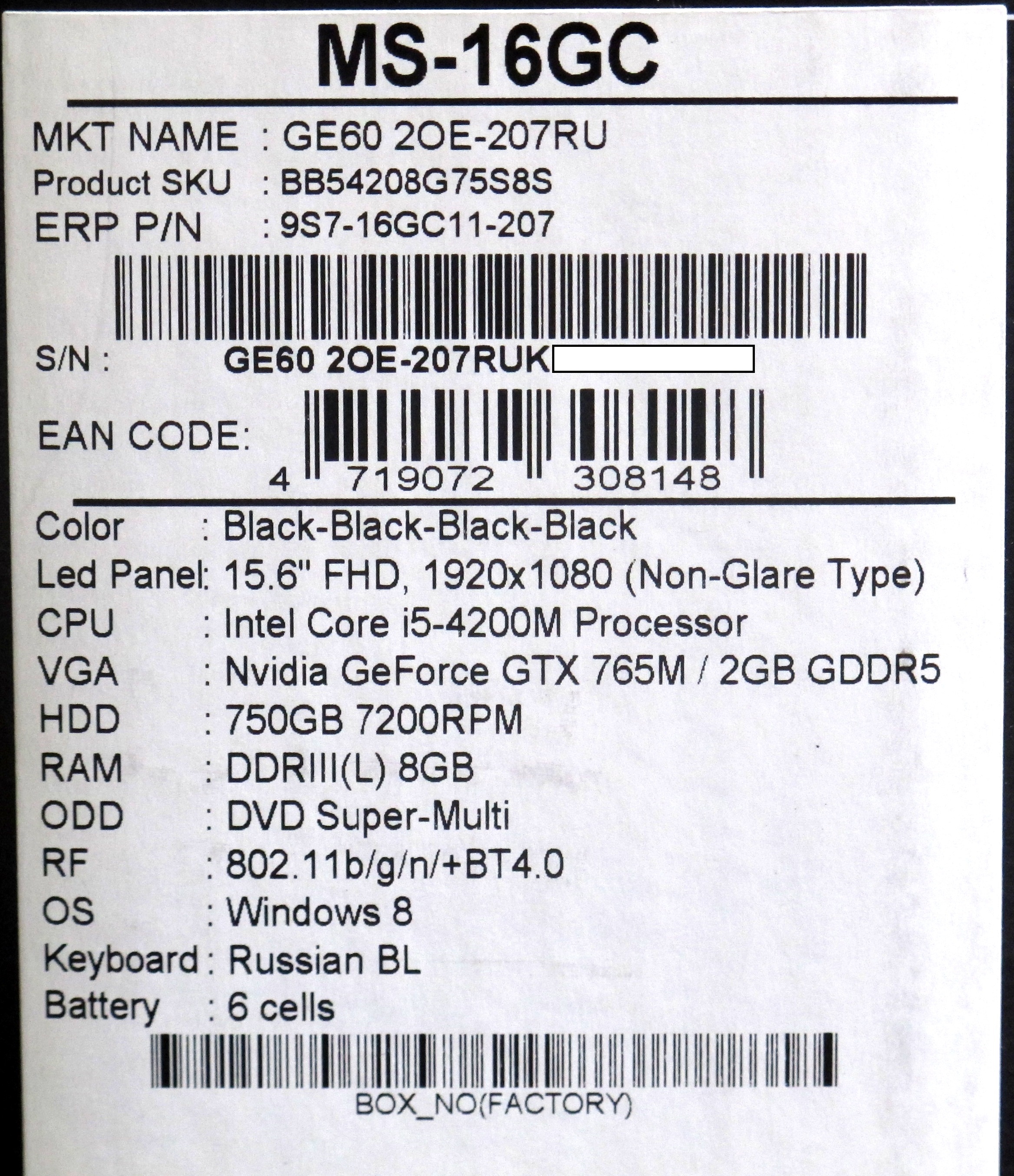 Описание ноутбука MSI GE60 2OE-207RU 9S7-16GC11-207