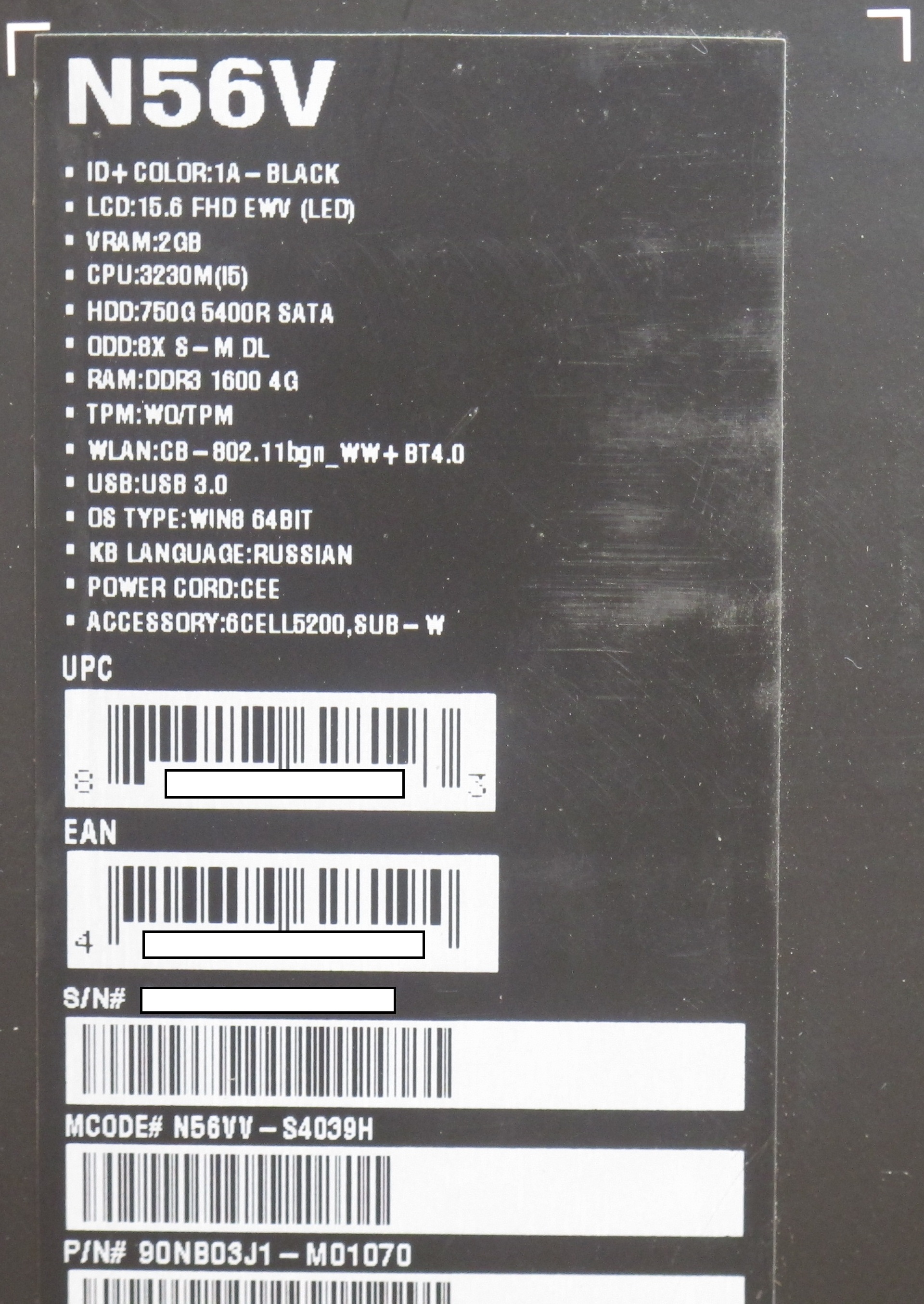 Описание ноутбука Asus N56Vv-S4039H 90NB03J1-M01070