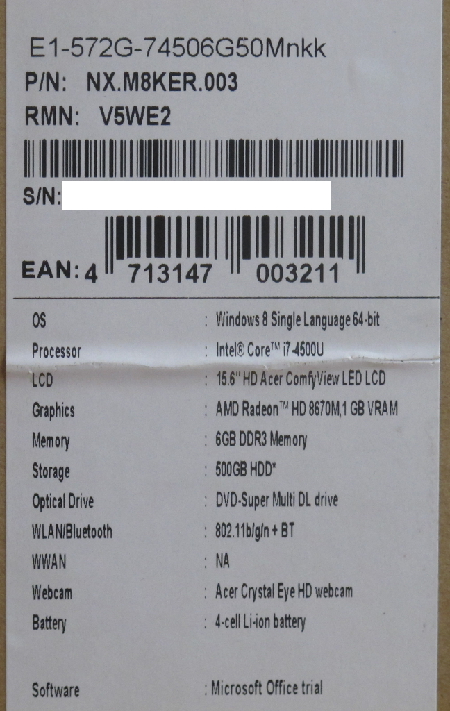 Описание ноутбука Acer Aspire E1-572G-74506G50Mnkk NX.M8KER.003
