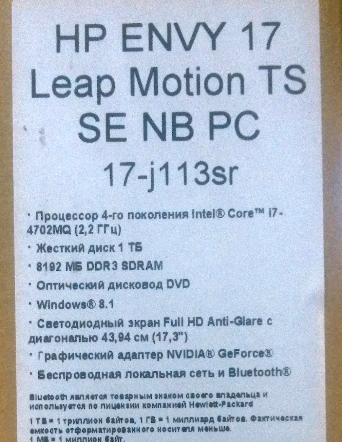 Описание ноутбука HP Envy 17-j113sr F7T12EA