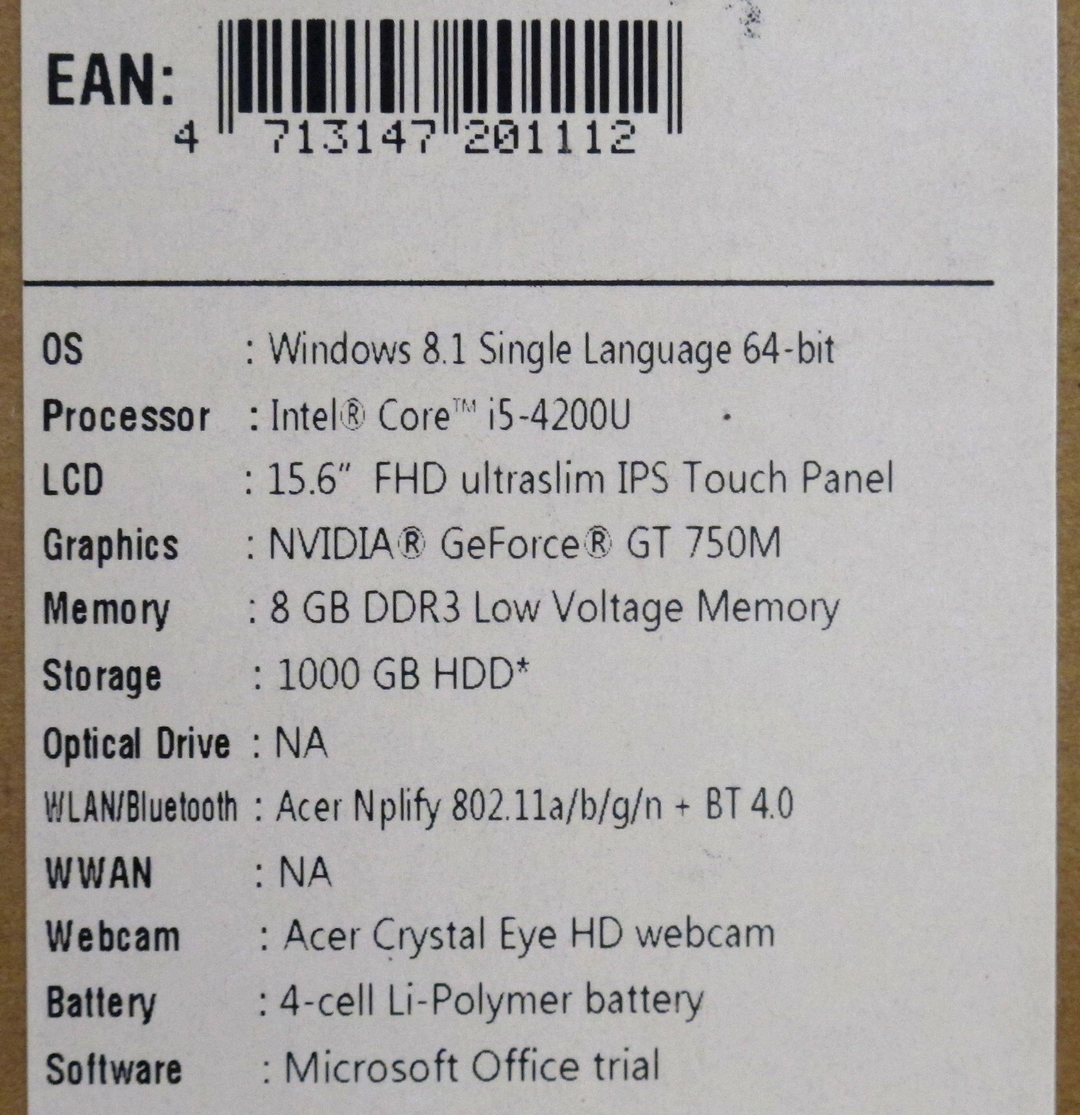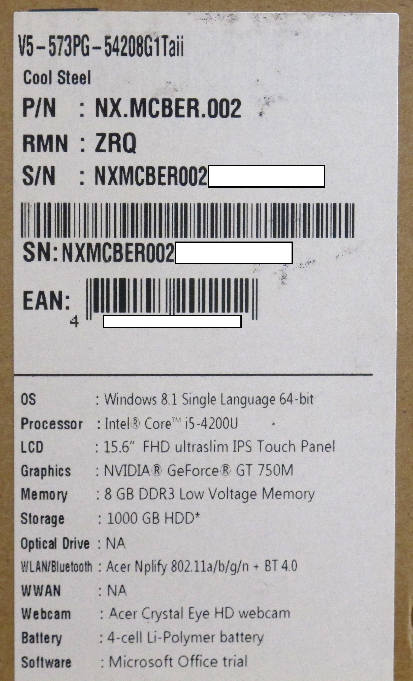 Описание ноутбука Acer Aspire V5-573PG-54208G1Taii NX.MCBER.002