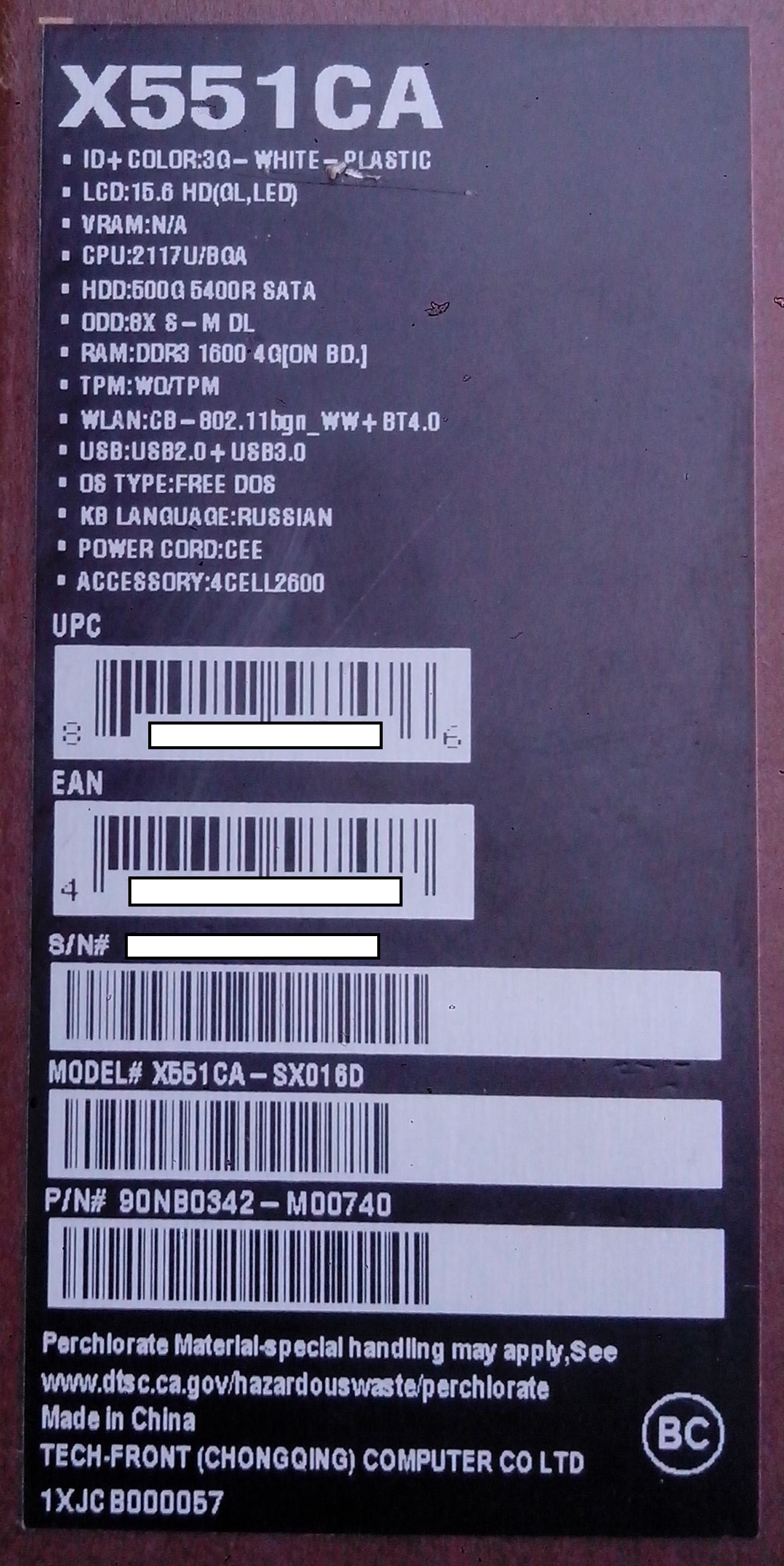 Описание ноутбука Asus X551Ca-SX016D 90NB0342-M00740