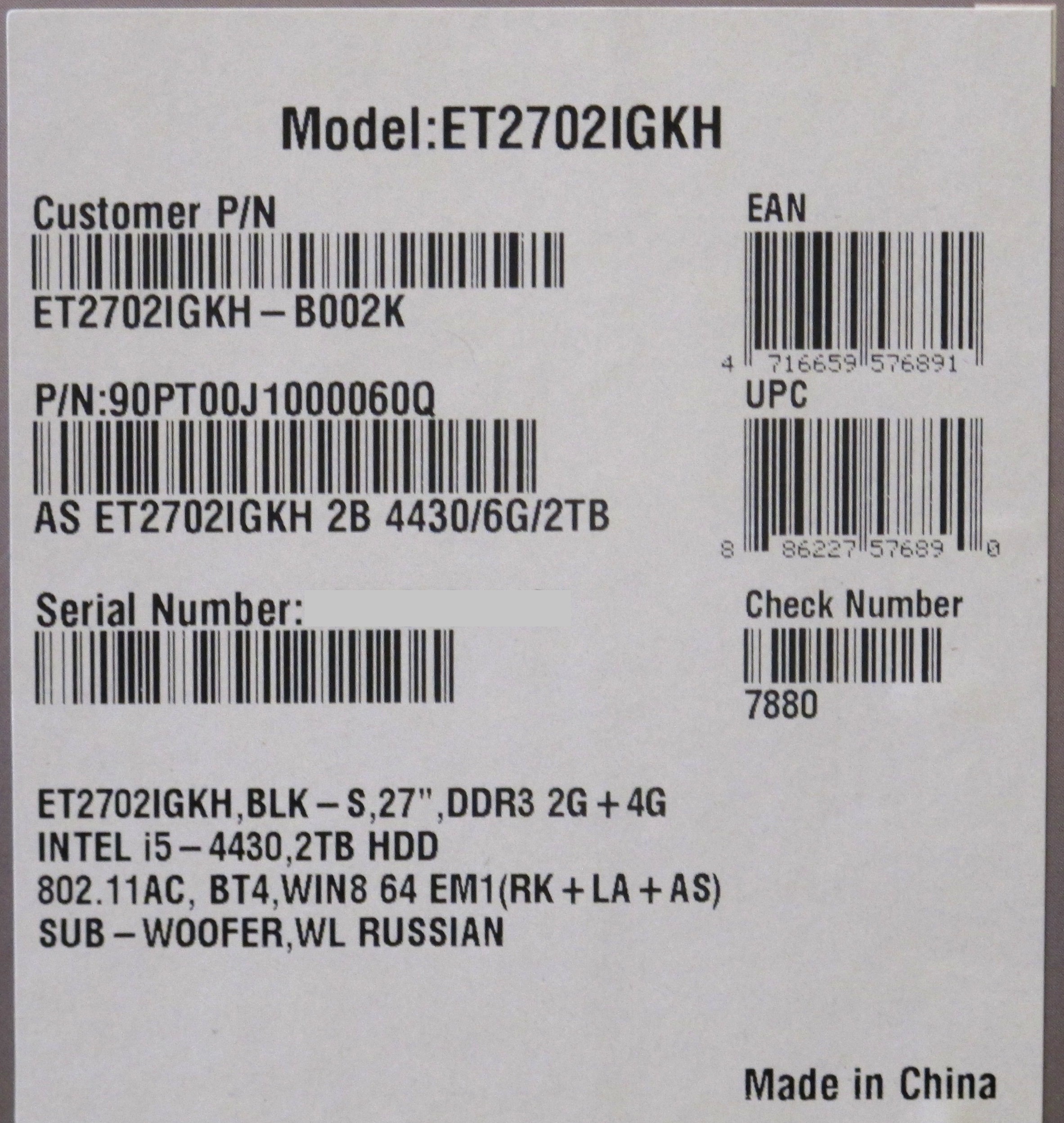 Моноблок Asus EeeTop PC ET2702IGKH-B002K 90PT00J1000060Q