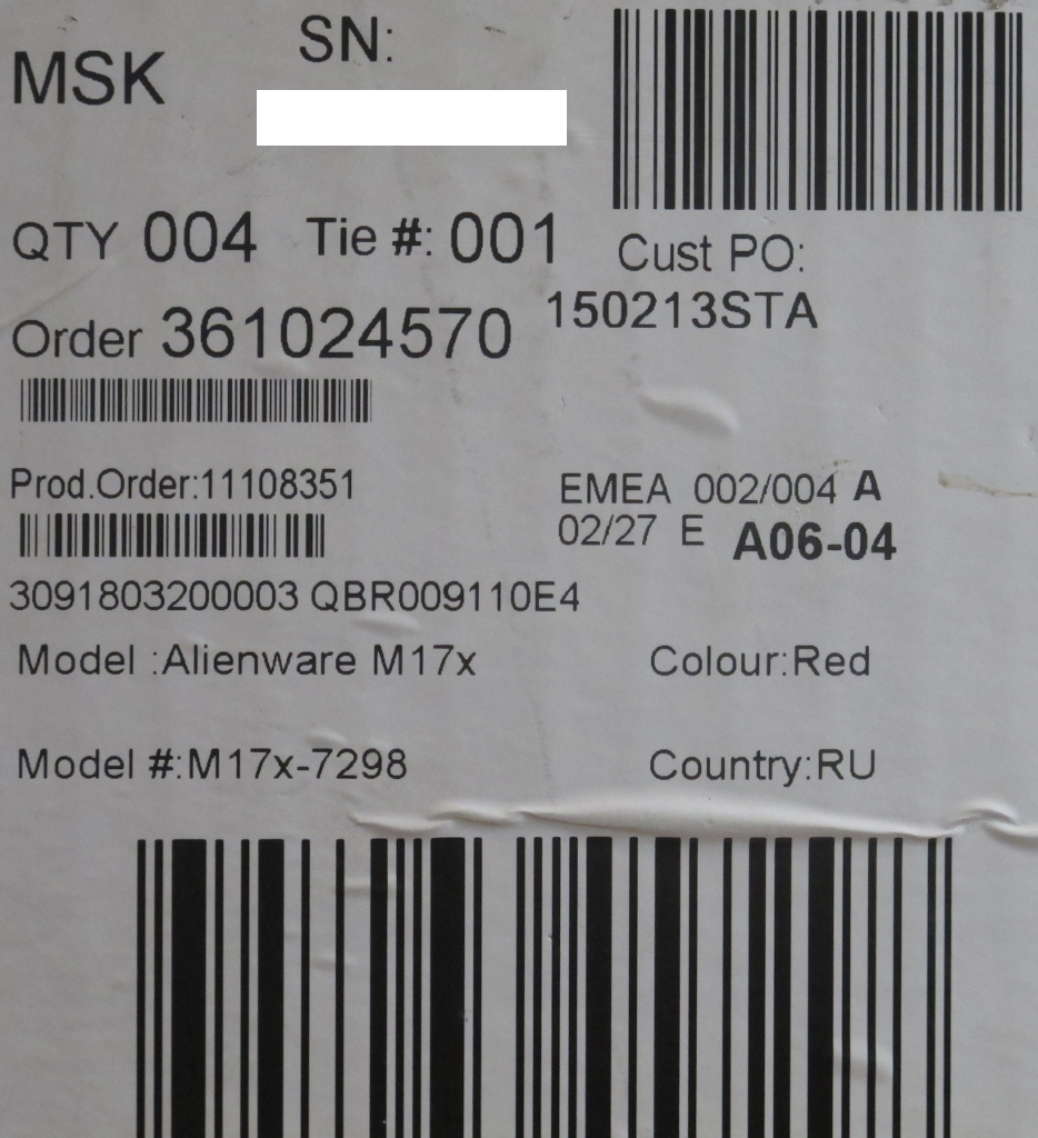 Описание ноутбука Dell Alienware M17x M17x-7298