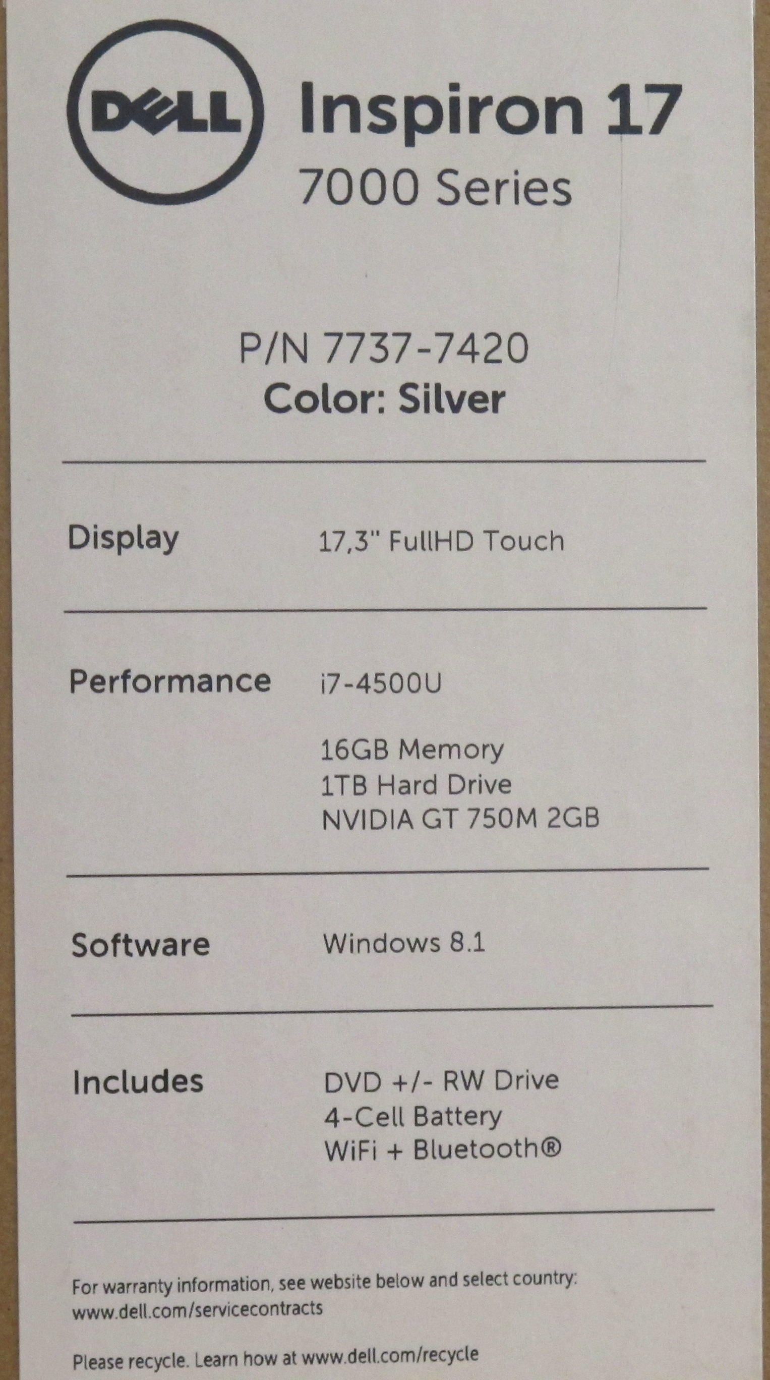 Описание ноутбука Dell Inspiron 7737 7737-7420