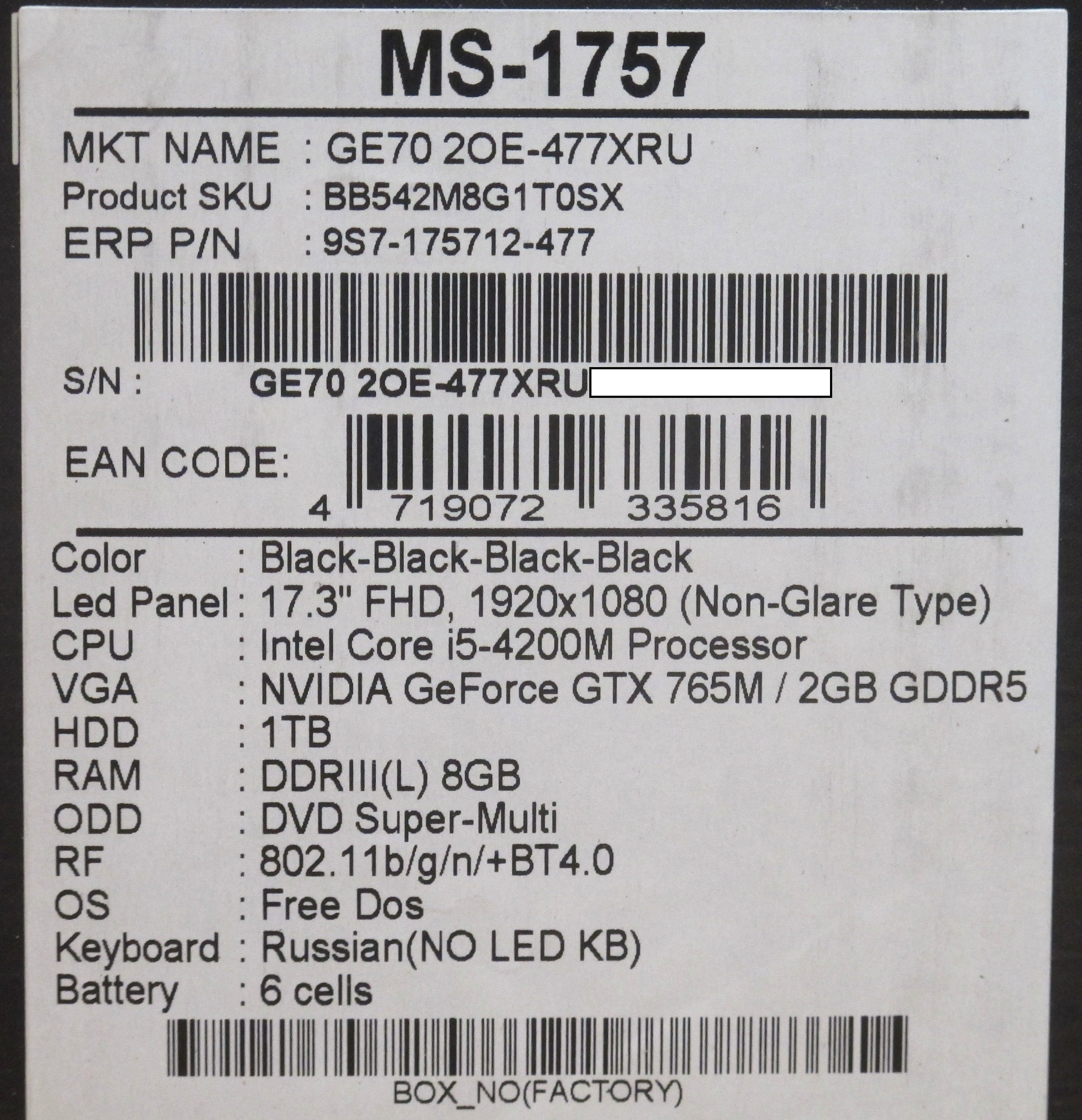 Описание ноутбука MSI GE70 2OE-477XRU 9S7-175712-477