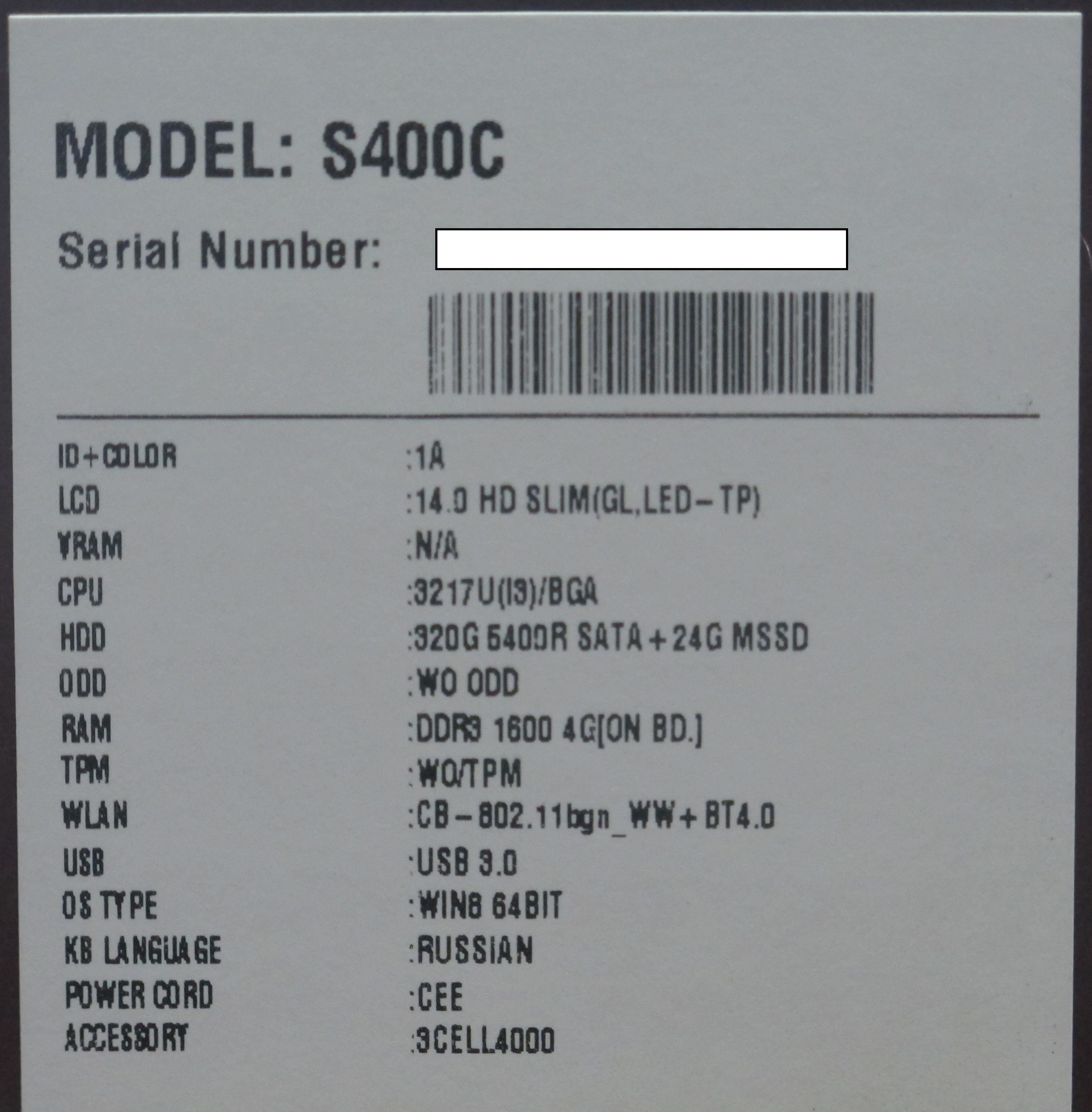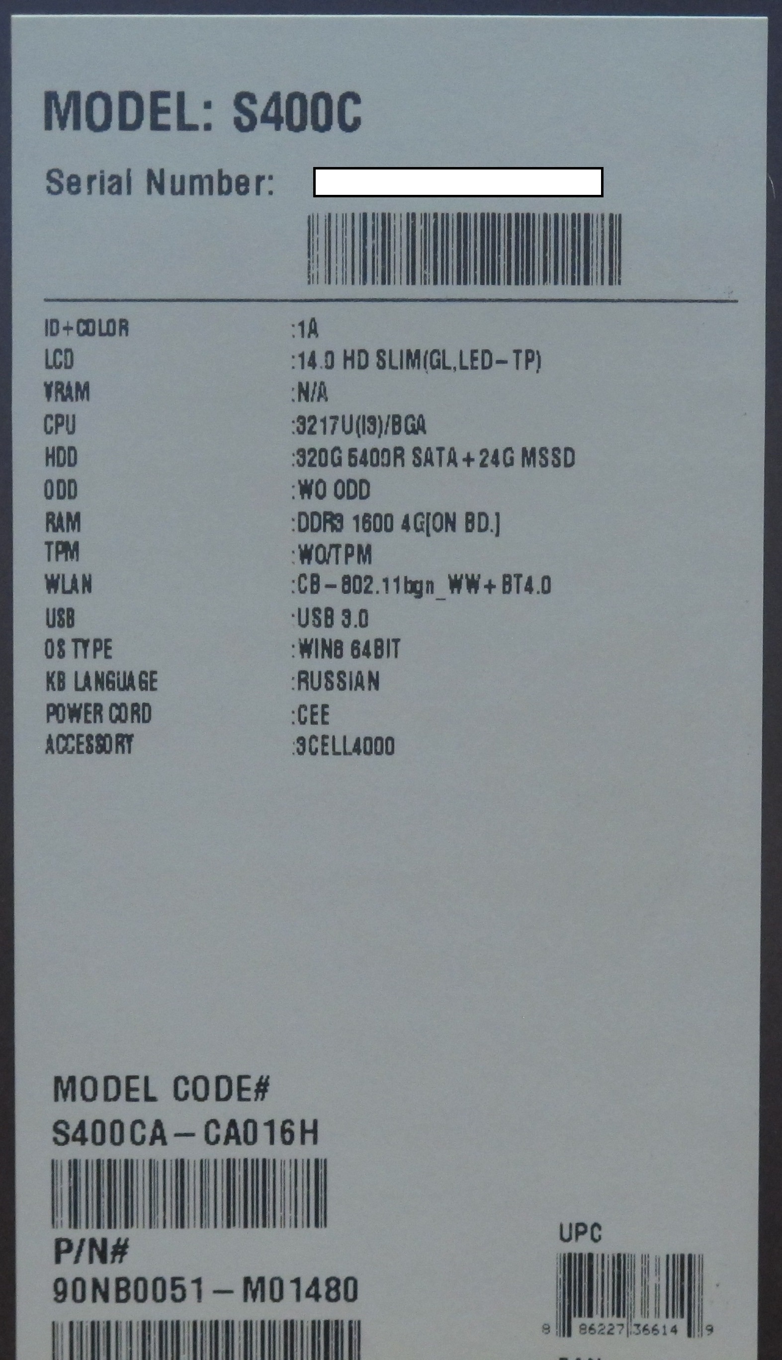 Описание ультрабука Asus VivoBook S400Ca-CA016H 90NB0051-M01480