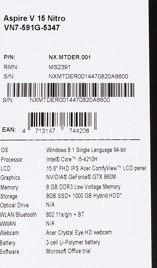 Intel Core i7 2500 MHz (4710HQ); 8192Mb DDR3L-1600MHz; 8Gb, SSD; 15.6" LED (1920x1080) FULL HD, IPS Матовый; nVidia GeForce GTX 860M, GDDR5 4096Mb, Intel HD Graphics 4600 из ОЗУ; Bluetooth 4.0, Camera (1.3), WiFi (802.11a/g/n); 3xUSB 3.0, HDMI, Line-out/Microphone in - combo, Microphone (встроенный); Card Reader 1-в-1 (SD); 1 год гарантия производителя