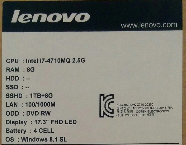 Intel Core i7 2500 MHz (4710MQ); 8192Mb DDR3L-1600MHz; 8Gb, SSD Гибридный; 17.3" LED (1920x1080) FULL HD Зеркальный; nVidia GeForce GT 745M 2048Mb, Intel HD Graphics 4600 из ОЗУ; Bluetooth 4.0, Camera (1.3), WiFi (802.11b/g/n); 2xUSB 2.0, 2xUSB 3.0, HDMI, Line-out/Microphone in - combo, Microphone (встроенный), VGA; Card Reader 2-в-1 (SD/MMC); 1 год гарантия производителя