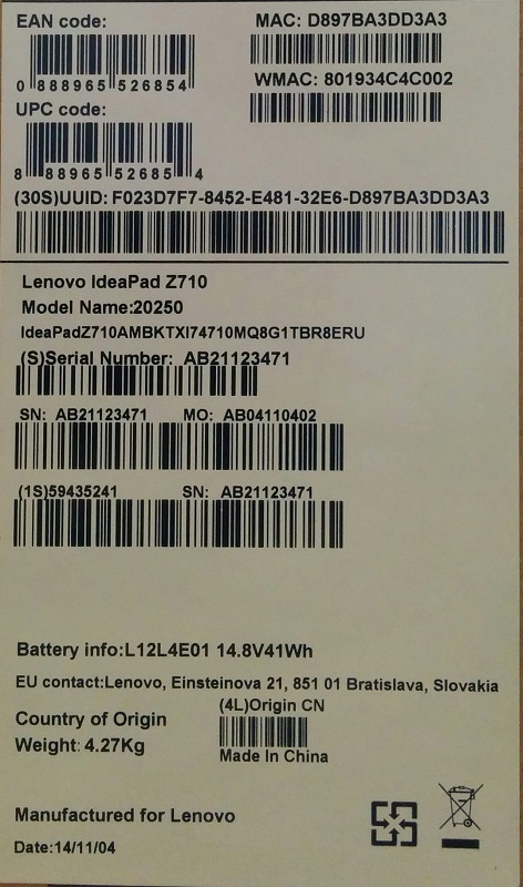 Описание ноутбука Lenovo IdeaPad Z710 59435241