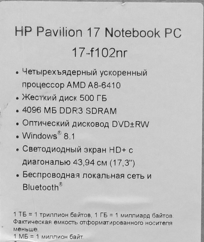 Описание ноутбука HP Pavilion 17-f102nr K5F11EA