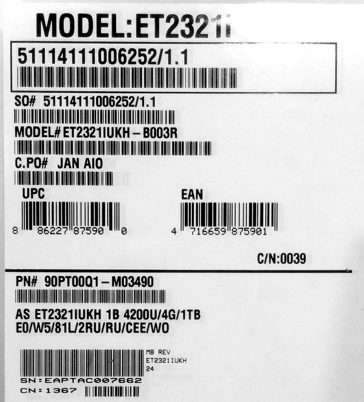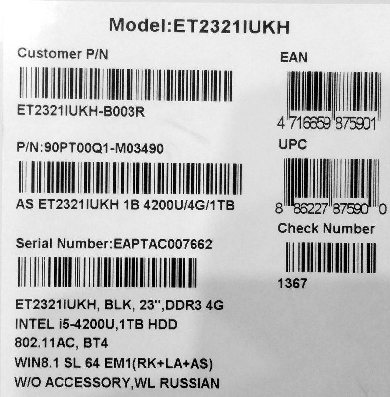 Описание моноблока Asus EeeTop PC ET2321IUKH-B003R 90PT00Q1-M03490