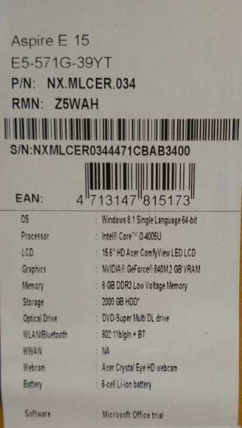 Описание ноутбука Acer Aspire E5-571G-39YT NX.MLCER.034