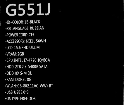 Описание ноутбука Asus G551Jx-DM143D 90NB08C2-M01700