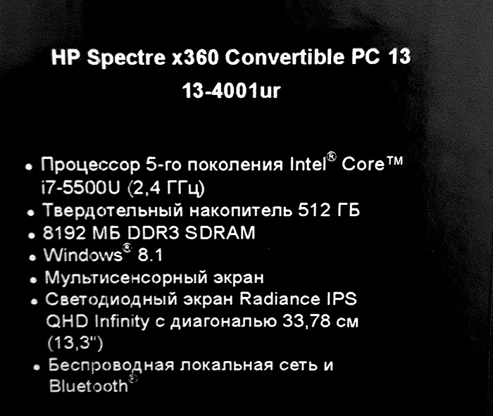 Описание ультрабука HP Spectre x360 13-4001ur M4A87EA