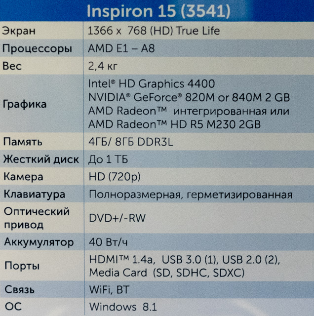 Описание ноутбука Dell Inspiron 3541 3541-9097