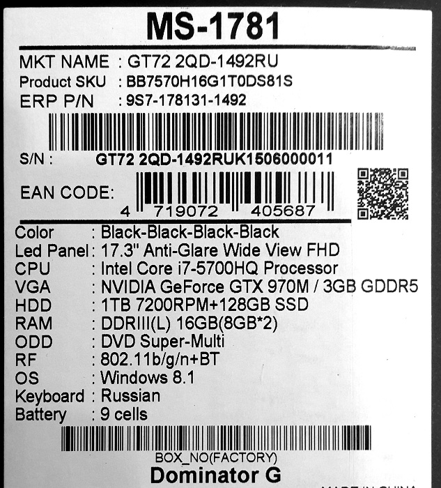 Описание ноутбука MSI GT72 2QD-1492RU 9S7-178131-1492