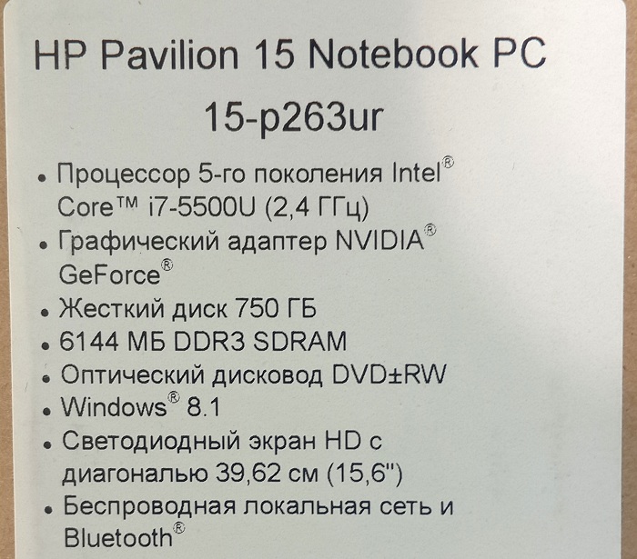 Описание ноутбука HP Pavilion 15-p263ur L1T74EA