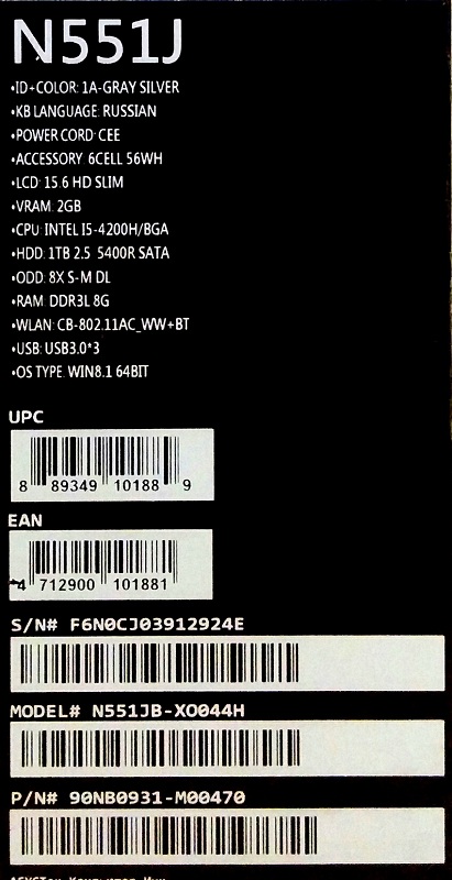Описание ноутбука Asus N551Jb-XO044H 90NB0931-M00470