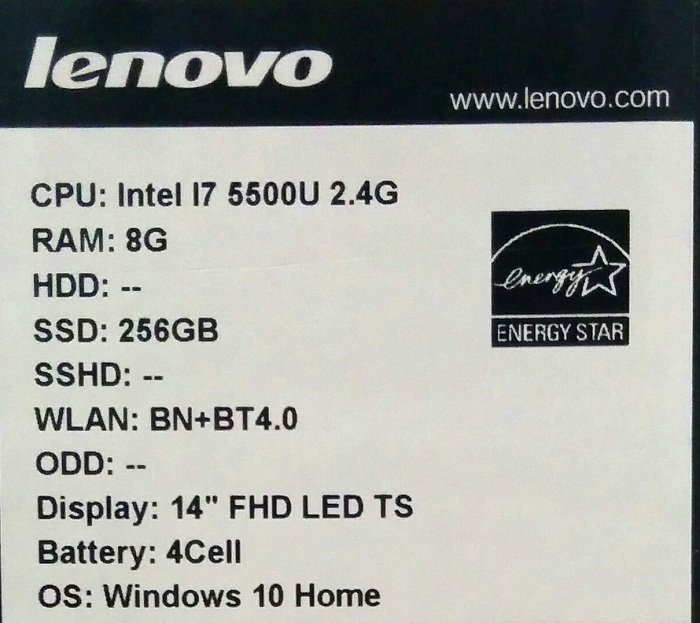 Intel Core i7 2400 MHz (5500U); 8192Mb DDR3L-1600MHz; 256Gb, SSD; 14" LED (1920x1080) FULL HD, IPS, TouchScreen Зеркальный, стекло; Intel HD Graphics 5500 из ОЗУ; Bluetooth 4.0, Camera (1.0), WiFi (802.11b/g/n/ac); 1xUSB 2.0, 2xUSB 3.0, HDMI, Line-out/Microphone in - combo, Microphone (встроенный) x 2; Card Reader 4-в-1 (SD/SDHC/SDXC/MMC); 1 год гарантия производителя
