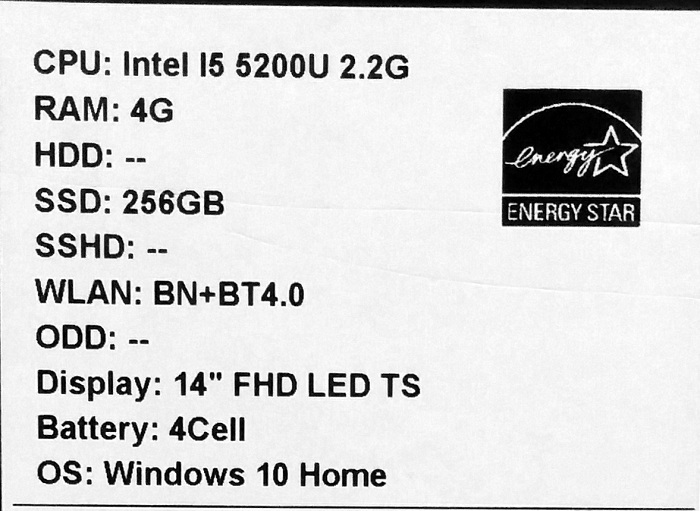 Intel Core i5 2200 MHz (5200U); 4096Mb DDR3L-1600MHz; 256Gb, SSD; 14" LED (1920x1080) FULL HD, IPS, TouchScreen Зеркальный, стекло; nVidia GeForce 940M, DDR3 2048Mb, Intel HD Graphics 5500 из ОЗУ; Bluetooth 4.0, Camera (1.0), WiFi (802.11b/g/n/ac); 1xUSB 2.0, 2xUSB 3.0, HDMI, Line-out/Microphone in - combo, Microphone (встроенный) x 2; Card Reader 4-в-1 (SD/SDHC/SDXC/MMC); 1 год гарантия производителя