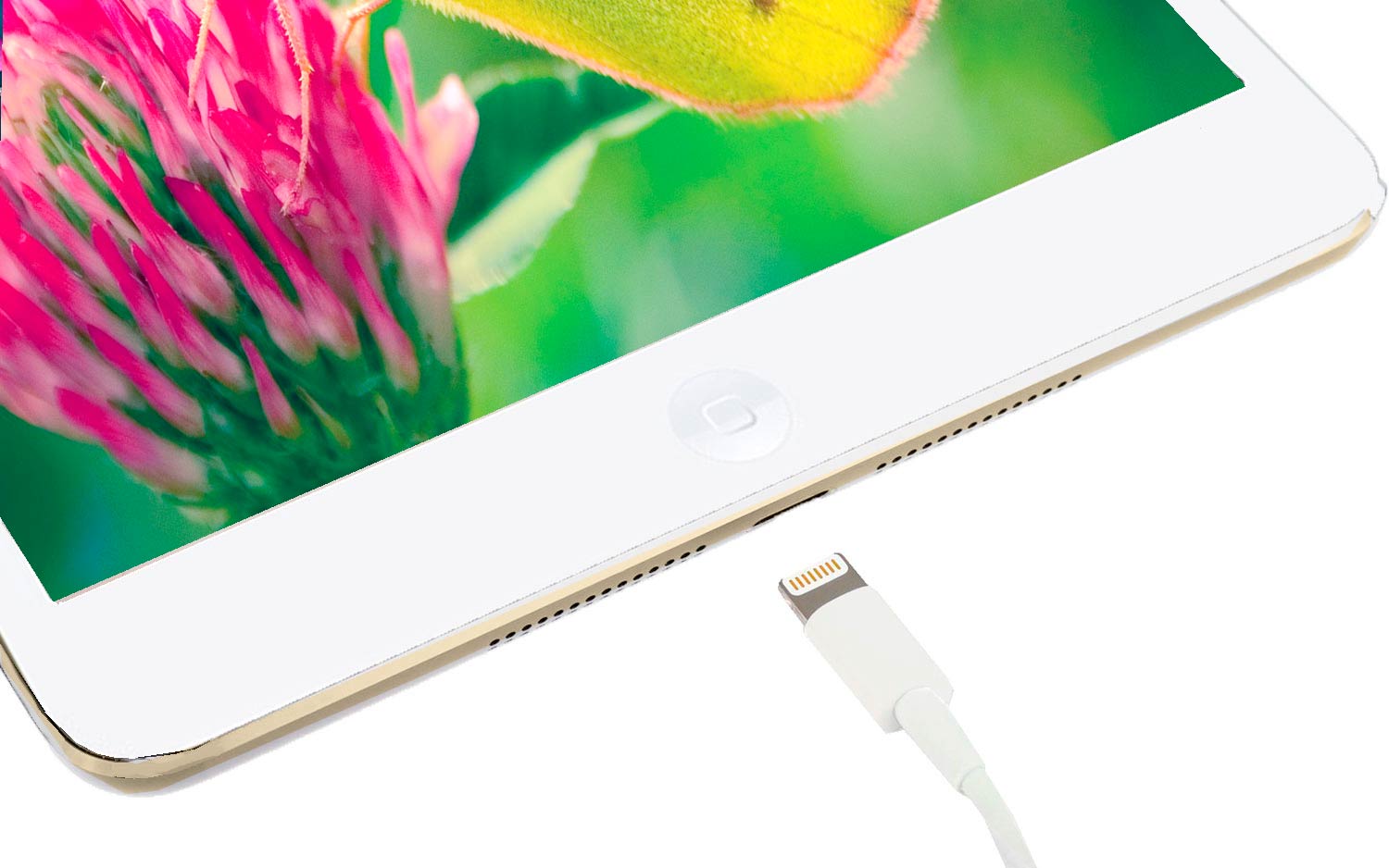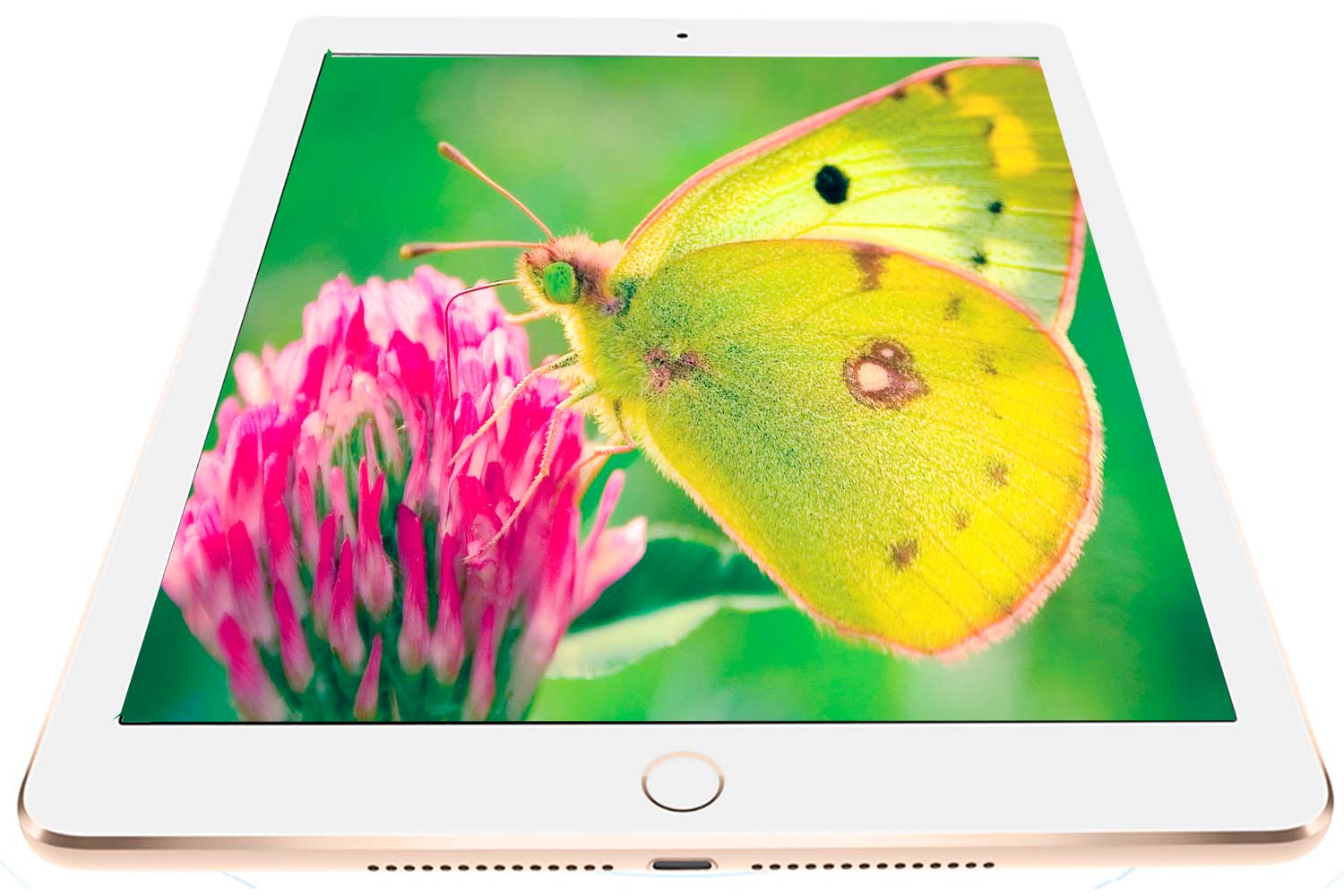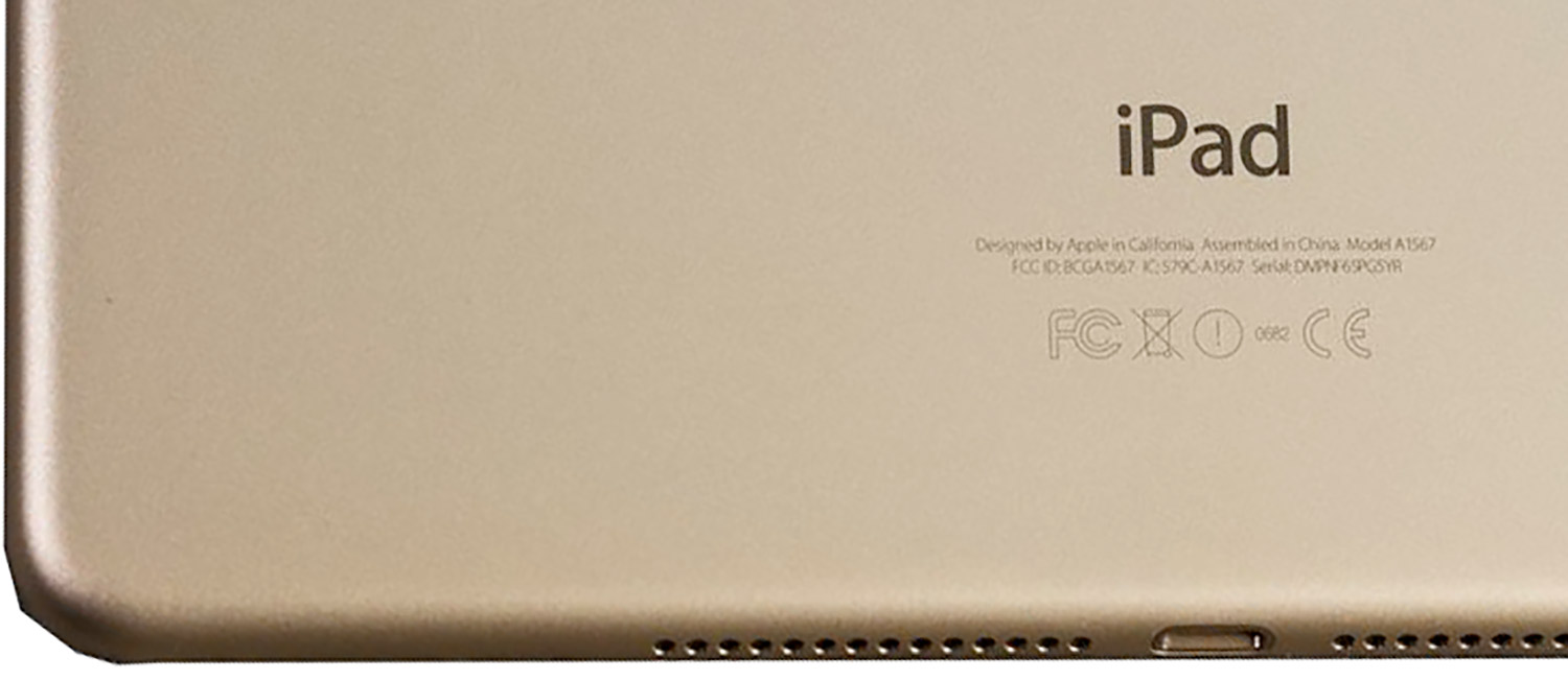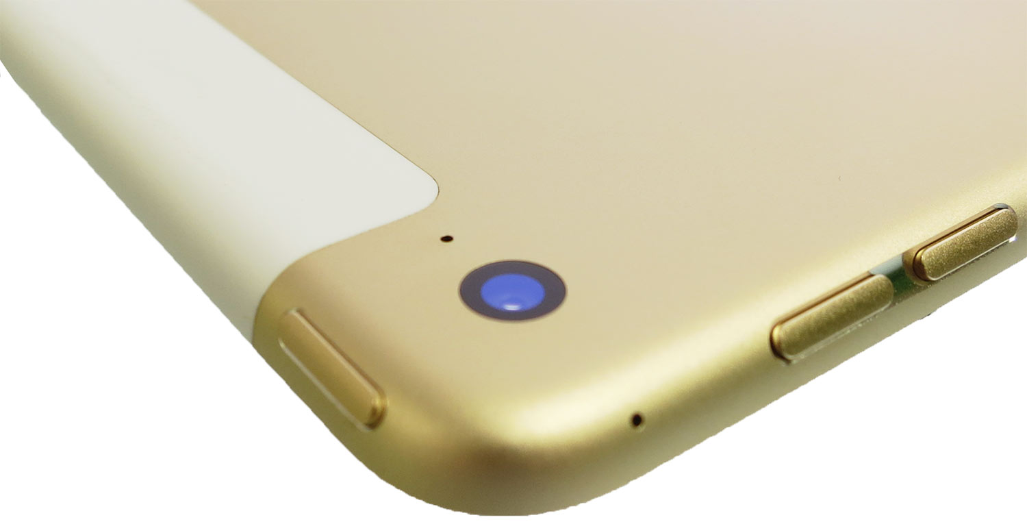Датчик уровня внешнего освещения, Звук +, Звук -, Домой, Датчик идентификации по отпечатку пальца (Touch ID) встроен в кнопку «Домой»; Touch ID распознает отпечаток вашего пальца под любым углом; Кроме разблокировки планшета, с помощью Touch ID можно также подтверждать покупки в iTunes и,