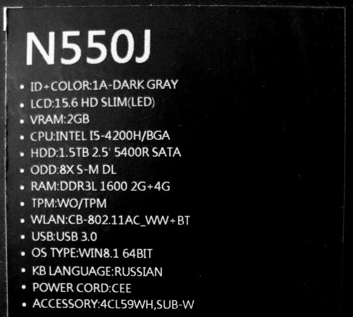 Описание ноутбука Asus N550Jk-XO589H 90NB04L1-M07410