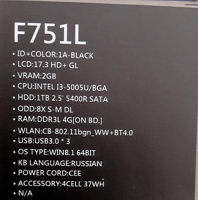 Описание ноутбука Asus F751Lj-TY138H 90NB08D1-M01610