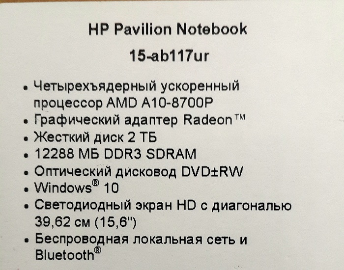 Описание ноутбука HP Pavilion 15-ab117ur N9S95EA
