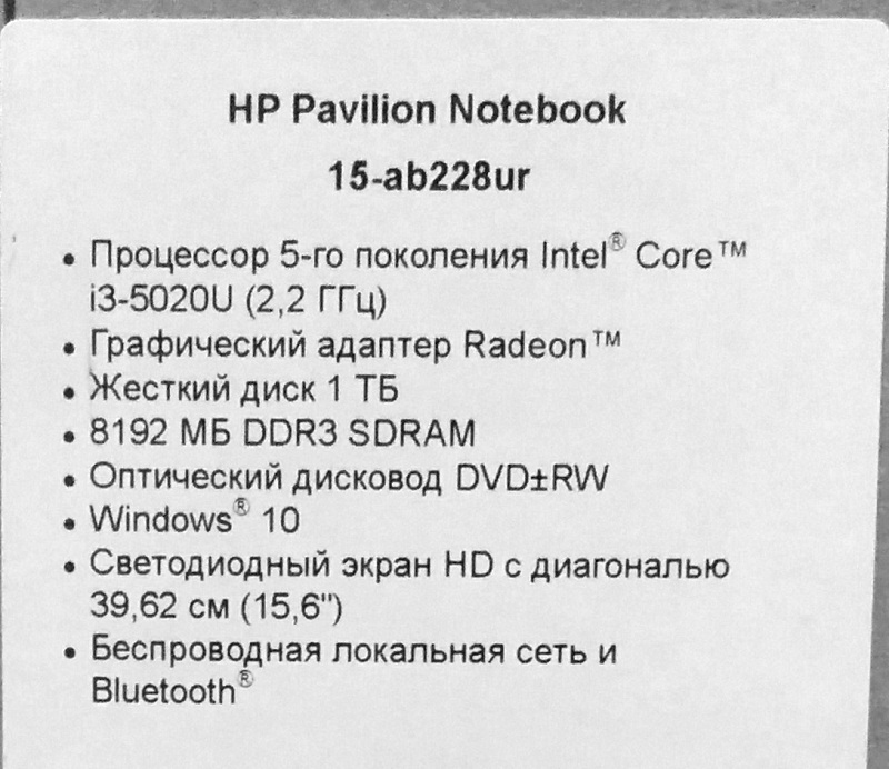 Описание ноутбука HP Pavilion 15-ab228ur N7H19EA