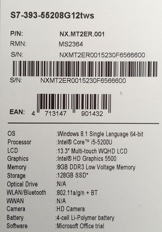 Описание ультрабука Acer Aspire S7-393-55208G12tws NX.MT2ER.001