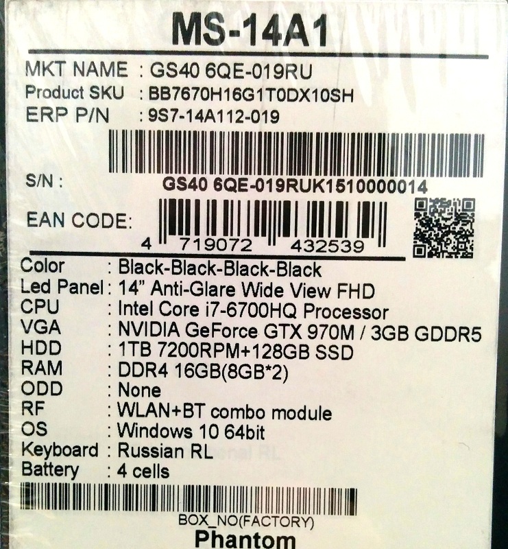 Описание ноутбука MSI GS40 6QE-019RU 9S7-14A112-019