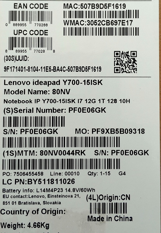 Описание ноутбука Lenovo IdeaPad Y700-15ISK 80NV0044RK