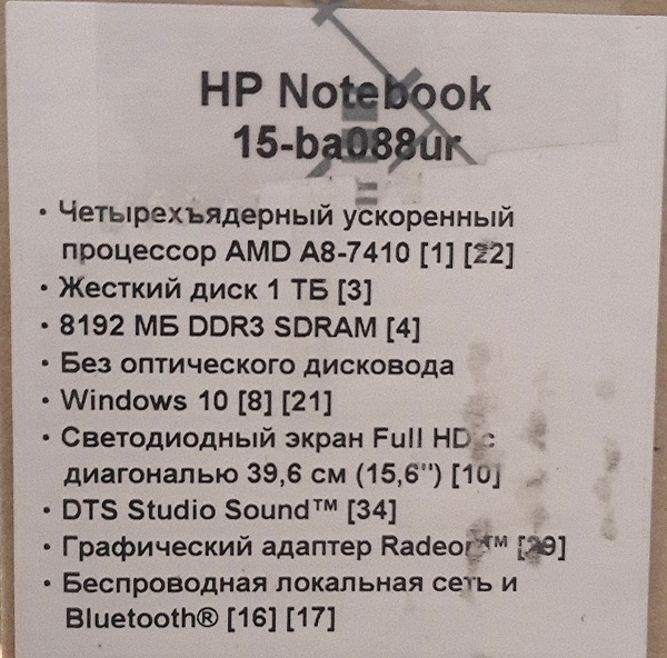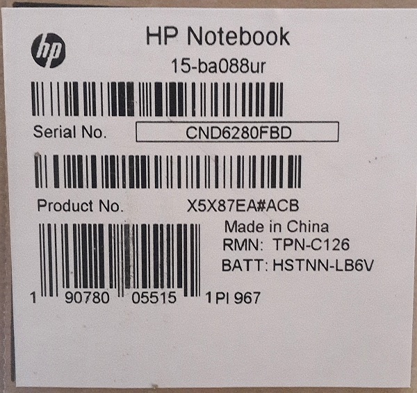 Описание ноутбука HP 15-ba088ur X5X87EA