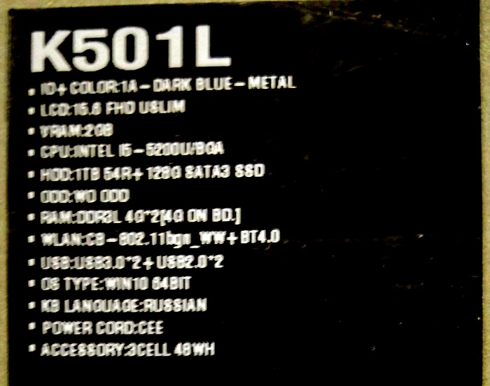 Описание ноутбука Asus K501Lb-DM155T 90NB08P1-M02330