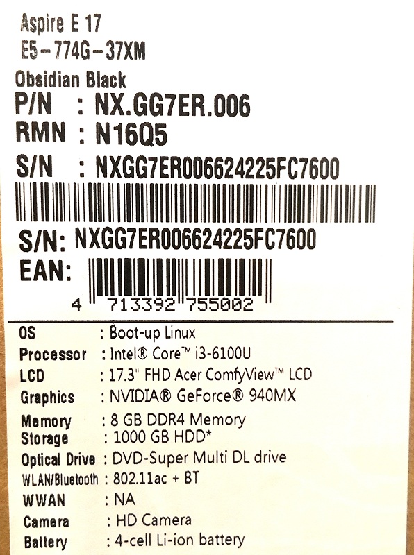 Intel Core i3 2300 MHz (6100U); 8192Mb DDR4-2133MHz; 1000 Gb; 17.3" LED (1920x1080) FULL HD Матовый; nVidia GeForce 940MX, DDR3 2048Mb, Intel HD Graphics 520 из ОЗУ; Bluetooth 4.0, Camera HD, WiFi (802.11a/b/g/n/ac); Linux; 1xUSB 3.1 Type C, 2xUSB 2.0, 2xUSB 3.0, HDMI, Line-out/Microphone in - combo, Microphone (встроенный) x 2, VGA; Card Reader (SD); 1 год гарантия производителя