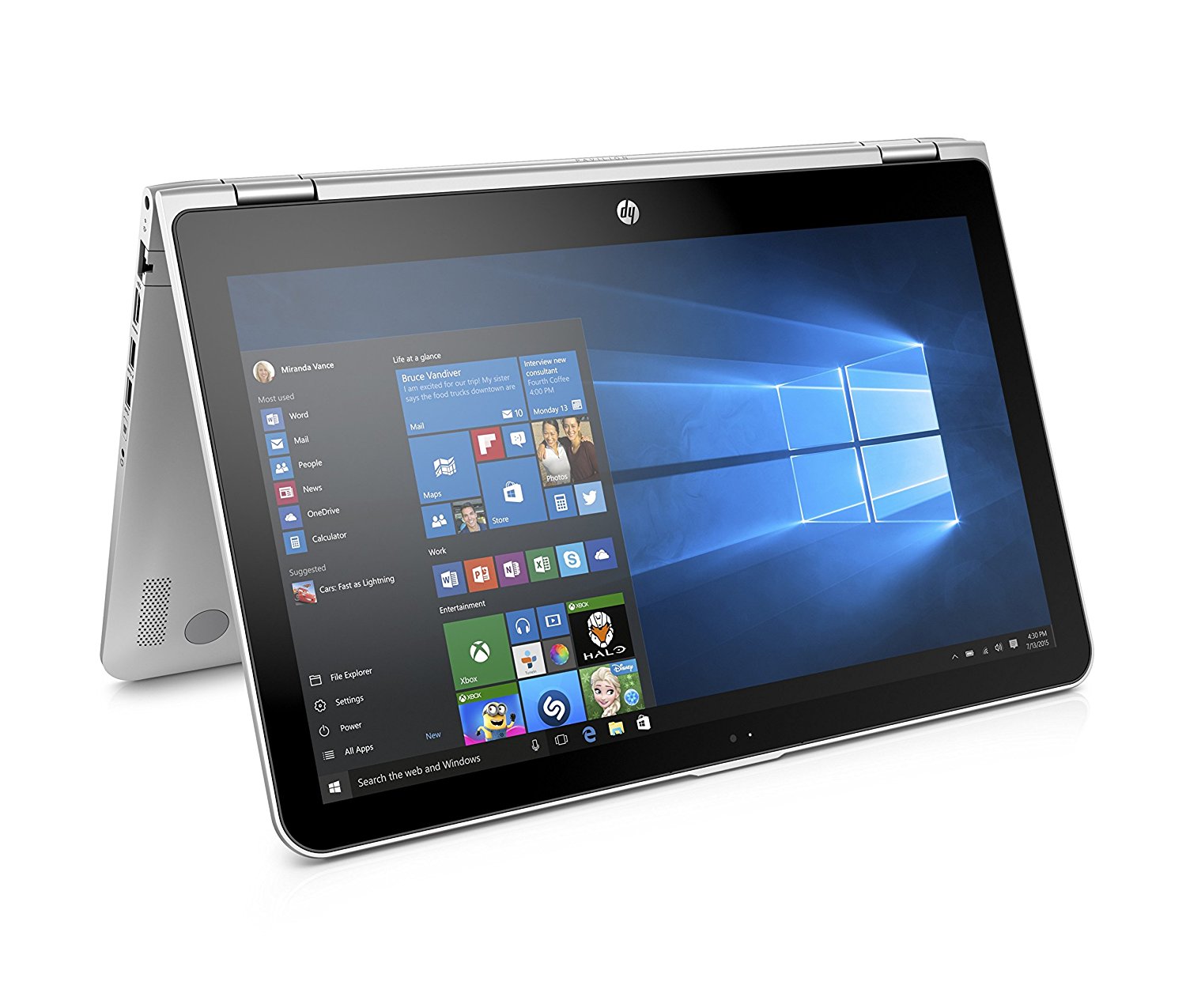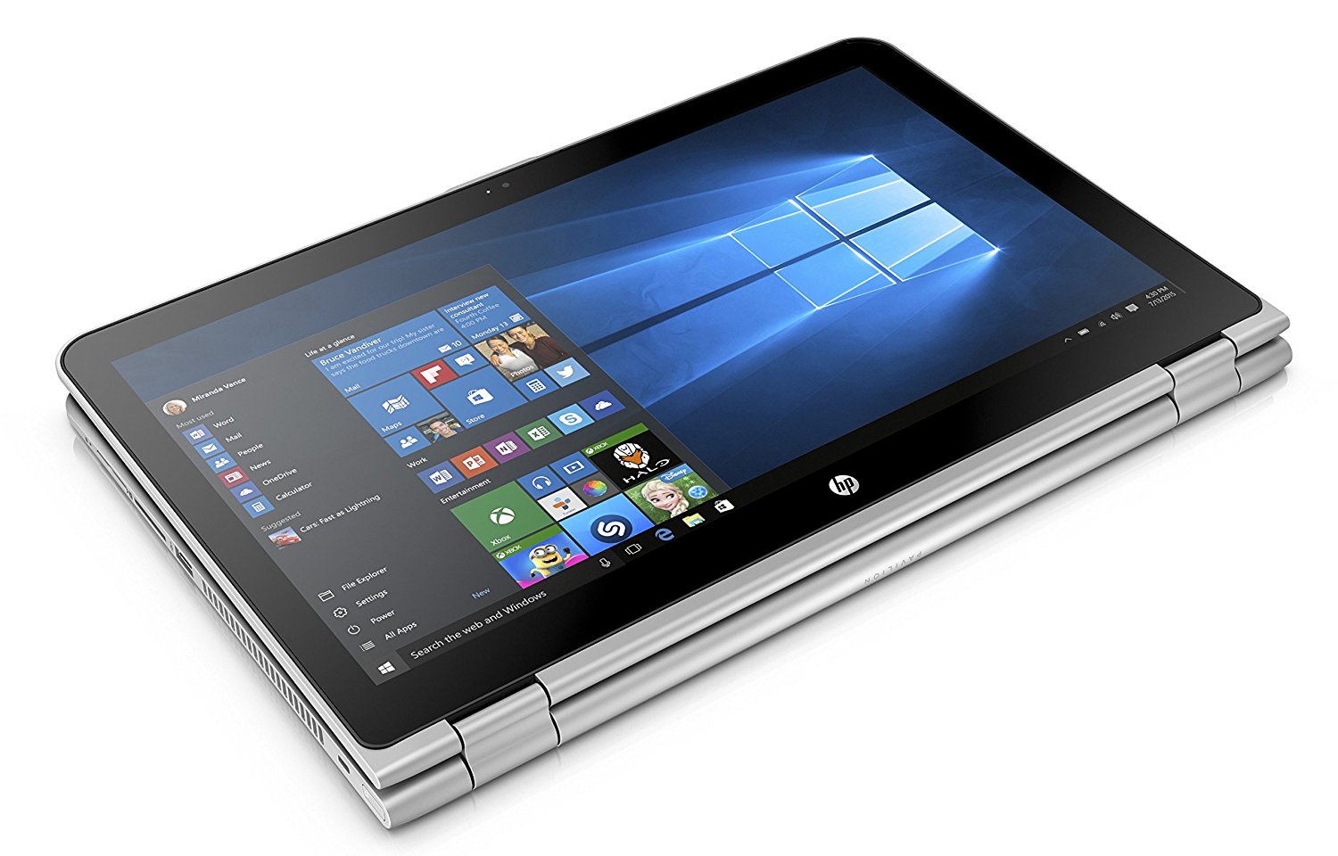Крышка ноутбука откидывается на 360°, позволяя использовать ноутбук как планшет,