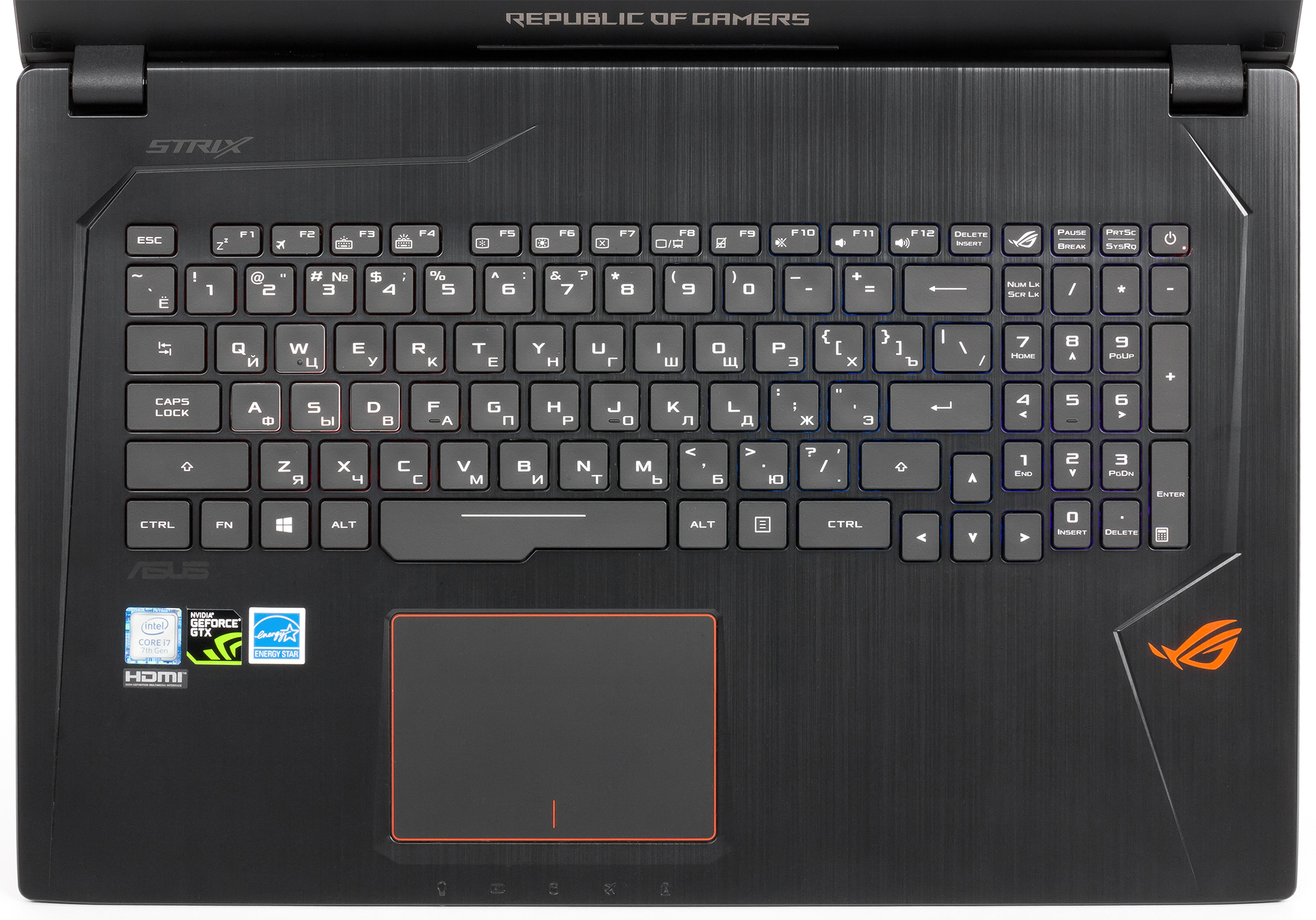 Устройства ввода | Кл-ра Windows полноразмерная с подсветкой клавиш, сенсорный планшет TouchPad с поддержкой MultiTouch |