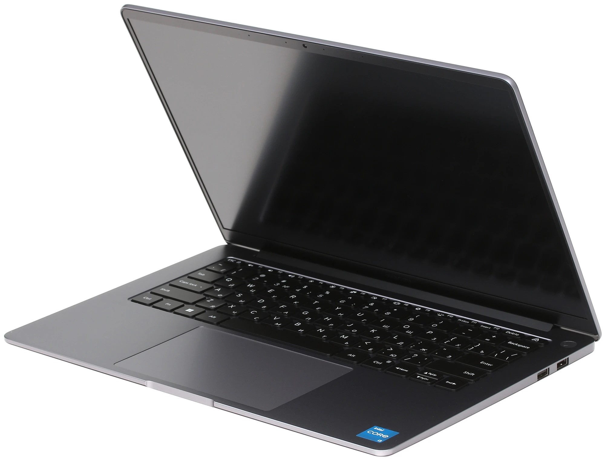 Intel Core i3 1500 MHz (1220P); 8192Mb LPDDR5-5200MHz; 256Gb, PCIe Gen 4x4, SSD; без ODD; 14" WQXGA (2880x1800) IPS Матовый, 120Hz; Intel UHD Graphics из ОЗУ; Bluetooth 5.2, Camera FHD 1080p, WiFi (802.11b/g/n/ac/ax); Microsoft Windows 11 Домашняя 64bit; 1xUSB 2.0 Type A, 1xUSB 3.2 Type C Gen 1, 2xUSB 3.2 Type A Gen 2, HDMI 2.0, Line-out/Microphone in - combo, Microphone (встроенный); Card Reader (SD); 1 год гарантия производителя