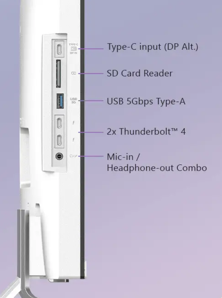 Intel Core Ultra 5 3600 MHz (125H); 16384Mb DDR5-5600MHz; 512Gb, PCIe Gen 4, SSD; без ODD; 27" LED WQHD 2K (2560x1440) IPS Матовый, 100Hz; Intel Arc Graphics из ОЗУ; Bluetooth 5.3, Camera 2МП выдвижная, WiFi 6E 802.11ax; Нет (Без ОС); 1xUSB 3.2 Type C Gen 1, 2xHDMI Out, 2xThunderbolt 4, 5xUSB 3.2 Type A Gen 1, HDMI Input, Line-out/Microphone in - combo, Microphone (встроенный) x 2; Card Reader (SD); 1 год гарантия производителя